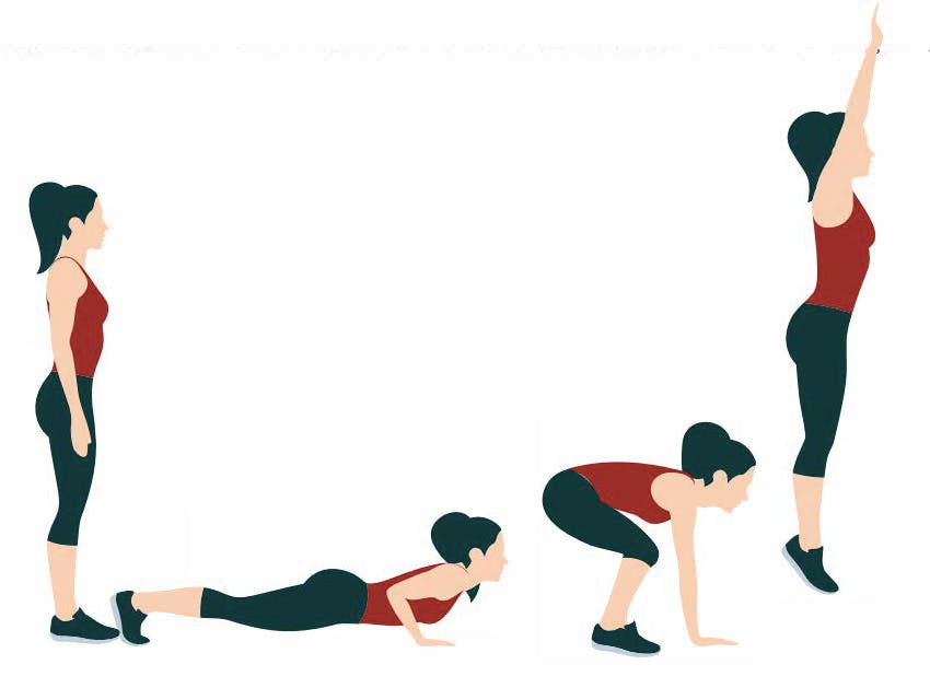 Med de här sju övningarna utmanar du både dina stora muskelgrupper och din puls, så du får maximal efterförbränning.