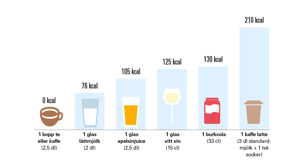 Du går nämligen upp i vikt av dem. Om du blev mätt av kaloritunga drycker hade det inte varit nån grej. Men det blir du inte. Om du vill gå ner i vikt måste du alltså hitta alternativ till de söta och feta dryckerna.