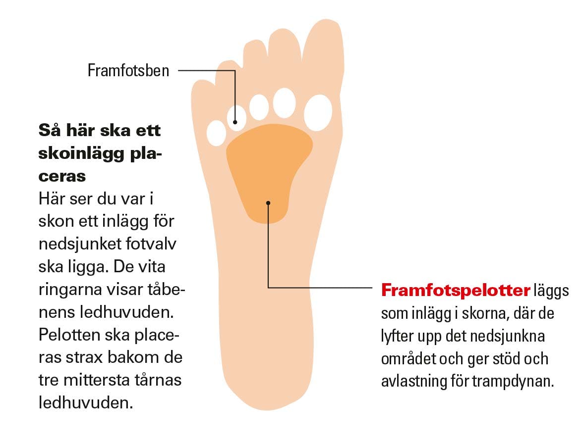 Du känner igen ett nedsjunket fotvalv på den karaktäristiska känslan som tillståndet ger. Innan det uppstår ren smärta, upplever många att de förlorar känseln i framfoten eller får en känsla av att foten sover. Några beskriver det också som att ha en sten i skon eller att gå på en veckad strumpa. Det är förlusten av spänst och valv på framfoten som skapar den känslan.