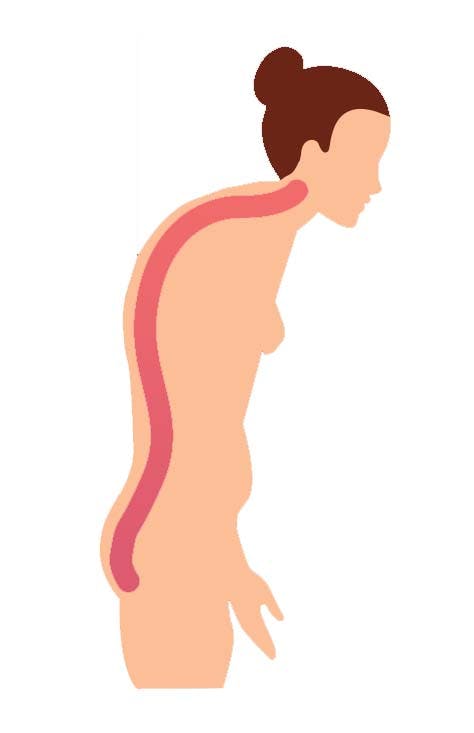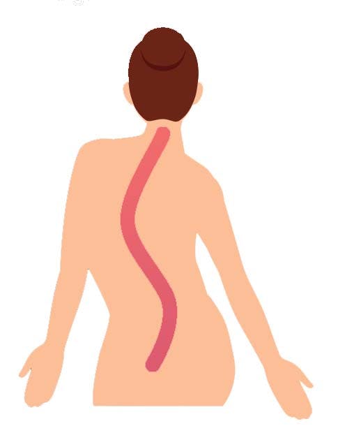 – innebär att ha en krokig ryggrad. En vanlig typ av skolios beror på att benen är olika långa, vilket gör att bäckenet blir snedställt. Bakifrån kan ryggen se ut som ett S eller ett spegelvänt S.