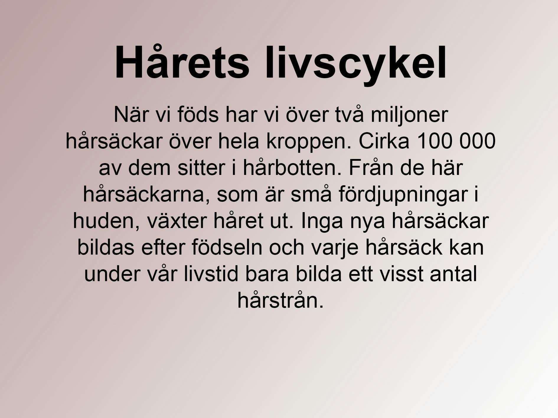 En vanlig dag tappar vi 50–100 hårstrån. Över en period på sju år kommer allt vårt hår på det viset att ha bytts ut. Men det kan alltså komma perioder när vi tappar mycket mer hår än vi producerar. Det kallas med ett medicinskt uttryck för alopeci, vilket inte är en term för orsaken till håravfallet utan det faktum att man tappar ovanligt mycket hår.