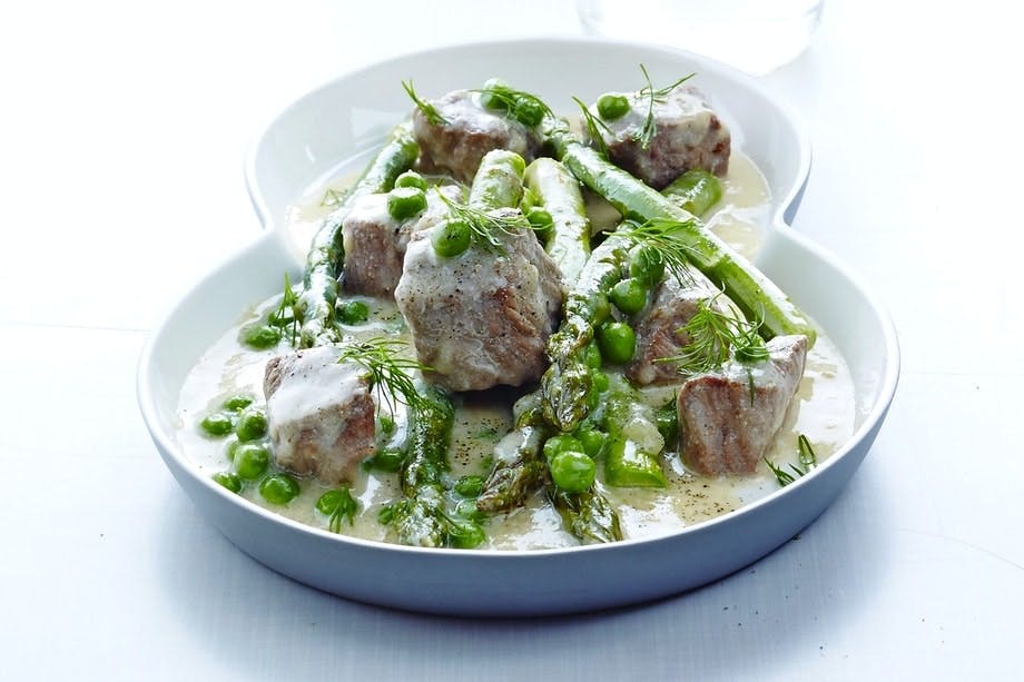 Kalvkött med sparris och ärter
