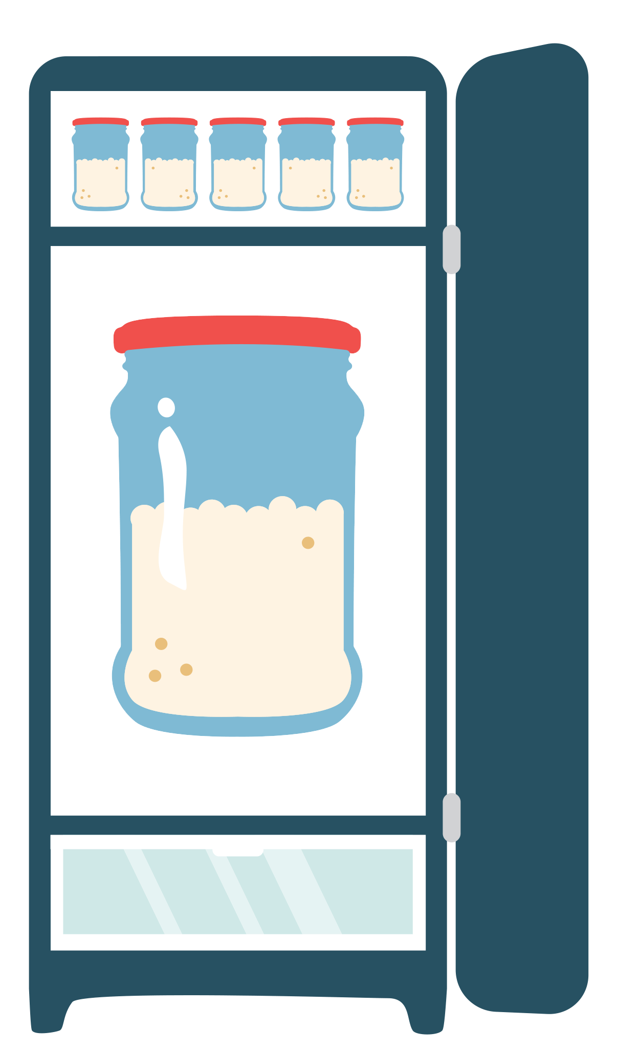 Det mest praktiska är att göra din kylskåpsgröt i en burk med skruvlock – särskilt om du ska ta med dig den. Välj gärna en behållare som rymmer mer än själva gröten. Då är det lätt att röra runt i gröten utan att det rinner över kanten.