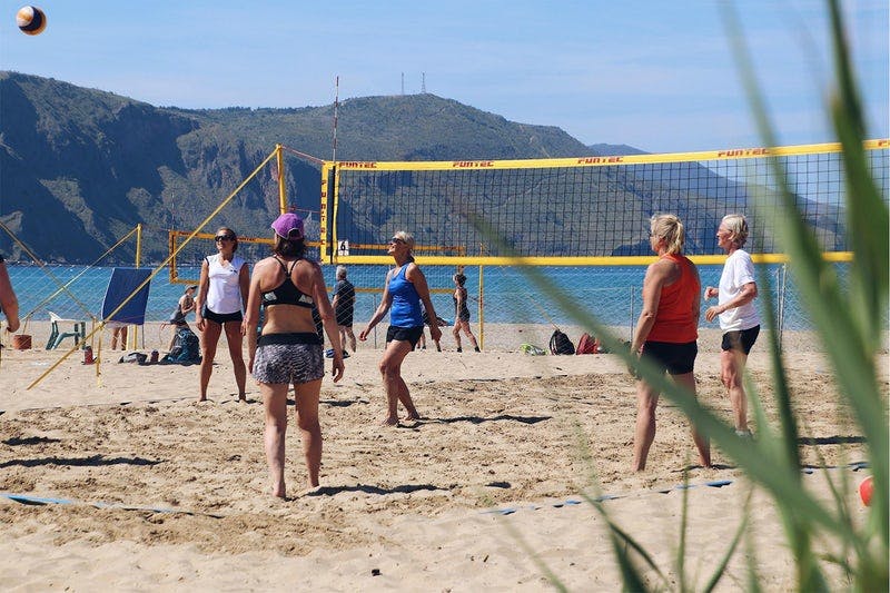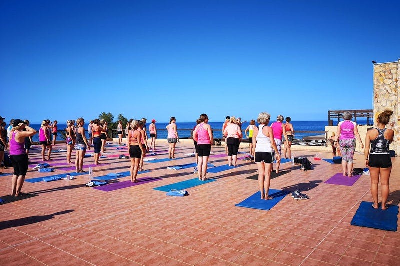Yoga under bar himmel. Träning på stranden. Inspirerande föredrag om att leva sunt. Avslappning, sol och social samvaro på ett superläckert hotell.