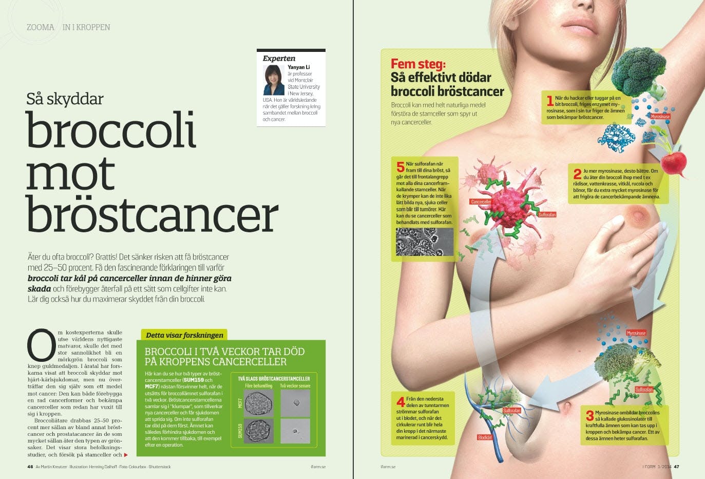 Självklart fortsätter våra populära serier som till exempel Zooma in i din kropp där vi går ännu mer på djupet. I I FORM 1/2014 får du reda på allt om alla de mikroskopiska processer som ständigt pågår i din kropp när broccoli skyddar dig mot bröstcancer.