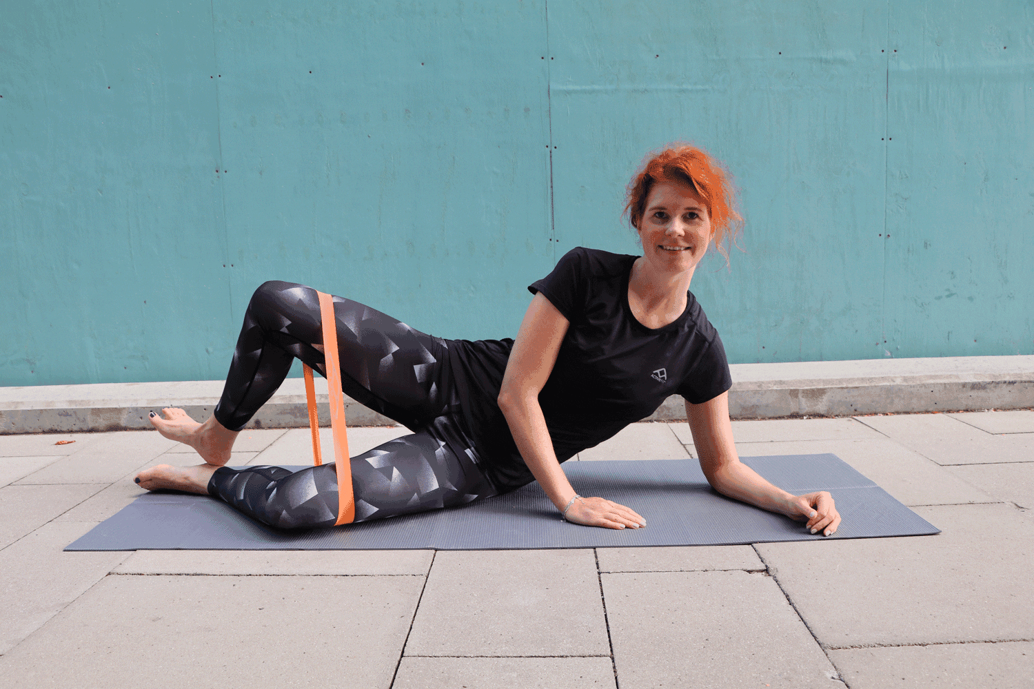 Övningen heter Clamshell och kräver inga hjälpmedel (förutom kanske en matta om du inte vill ligga på golvet).