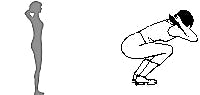 Stå med fötterna parallella och på en höftbredds avstånd. Placera händerna bakom nacken. Böj sedan i knäna.