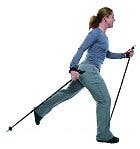 Sänk axlarna och titta framåt. Fokusera på att använda armarna och ta avtramp med stortån i underlaget så att vadmusklerna aktiveras. Håll ett fast grepp om staven när du sätter ner den och släpp efterhand som armen glider bakåt så att du till slut bara håller med tummen och pekfingret.