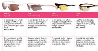 Löparsolglasögon ska sitta orubbligt stilla, de får inte imma igen även om svetten rinner ner i ansiktet och de ska självklart ge dig ett effektivt skydd mot sol, vind, mötande insekter och låga grenar.